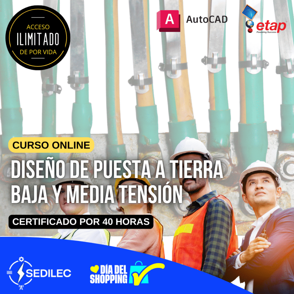 Inscribirme por WhatsApp Descargar temario En este curso avanzado de Diseño de Sistema de Puesta a Tierra Baja y Media Tensión, aprenderás a validar y diseñar sistemas de puesta a tierra cumpliendo con las normativas internacionales como IEC, ANSI e IEEE. Se cubrirán técnicas avanzadas para medir la resistividad del terreno, métodos de cálculo para sistemas de puesta a tierra, y la selección de materiales adecuados para garantizar la seguridad y eficiencia de las instalaciones. El curso está dirigido a ingenieros eléctricos, técnicos y profesionales del sector, y aborda desde el diseño de mallas de baja y media tensión hasta el uso de software ETAP para simulaciones y análisis. A lo largo del curso, aplicarás conocimientos prácticos con material descargable y ejemplos para facilitar el aprendizaje de la implementación de sistemas eléctricos seguros y eficaces. S01 Validación y Normativa Validación de diseño y Normativa IEC / ANSI / IEEE. Elevación de potencial y límites permisibles. Mejoramiento del terreno (Tierra de chacra). Elementos y preparado de pozos a tierra. S02 Medición de Resistividad Métodos de medición: Wenner, suelo uniforme, dos capas y multicapas. Medición y simulación con ETAP. Suelos estándar según IEEE STD 80 y CNE-U. Interpretación de SUCC de terrenos y AAHSTO. S03 Criterios IEEE STD 80 Criterio de diseño y procedimiento teórico. Factores de división de corriente, decremento y crecimiento. Tensión de toque y paso (ventajas de capa superficial). Simulación de malla en ETAP. S04 Corrientes de Falla y ETAP Análisis de fallas: trifásica, línea-tierra, línea-línea. Corrientes de secuencia (positiva, negativa, cero). Simulación de fallas en ETAP (Norma IEC vs ANSI). Aterramiento del neutro. S05 Diseño de Mallas y Sistemas Sistemas TN, TT, IT y mallas (principal, comunicaciones, salud). Uso de ecualizadores y cobre laminado. Selección de conductores y equipotencialidad según CNE-U. Aterramiento de estructuras y zapatas. S06 Pararrayos y Subestaciones Diseño de mallas para pararrayos (Franklin y PDC). Malla de media tensión y análisis de cortocircuito (IEEE 80). Aterramiento de equipamiento de MT. Simulación en ETAP (importación desde AutoCAD) e informes.